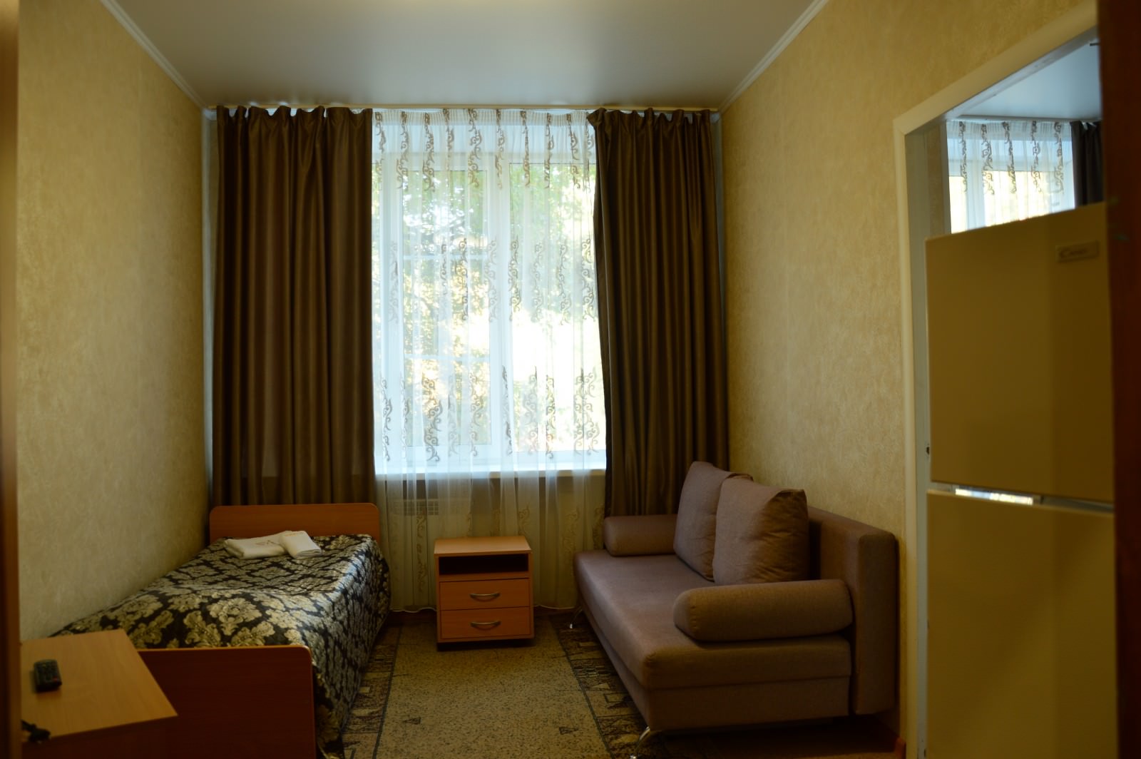 Площадь номера - 22 кв.м. 3 осн. места. 1 доп. место. Мебель: диван раскладной, кровати односпальные, прикроватные тумбочки, стол, стулья, шкаф. Оборудование: мини-холодильник, телевизор. Санузел: с душем, туалетные принадлежности. Сервис: смена полотенец, смена постельного белья, уборка номера.